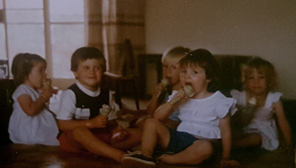 We were neighbours. Joanne-up-the-road. Joanne-and-Gerard. Joanne-and-Gerard would come down to swim with me in our pool. We'd all climb over the gate at the side of the house, or slip through it, and go swim. We had a game, we called it Adam and Eve.